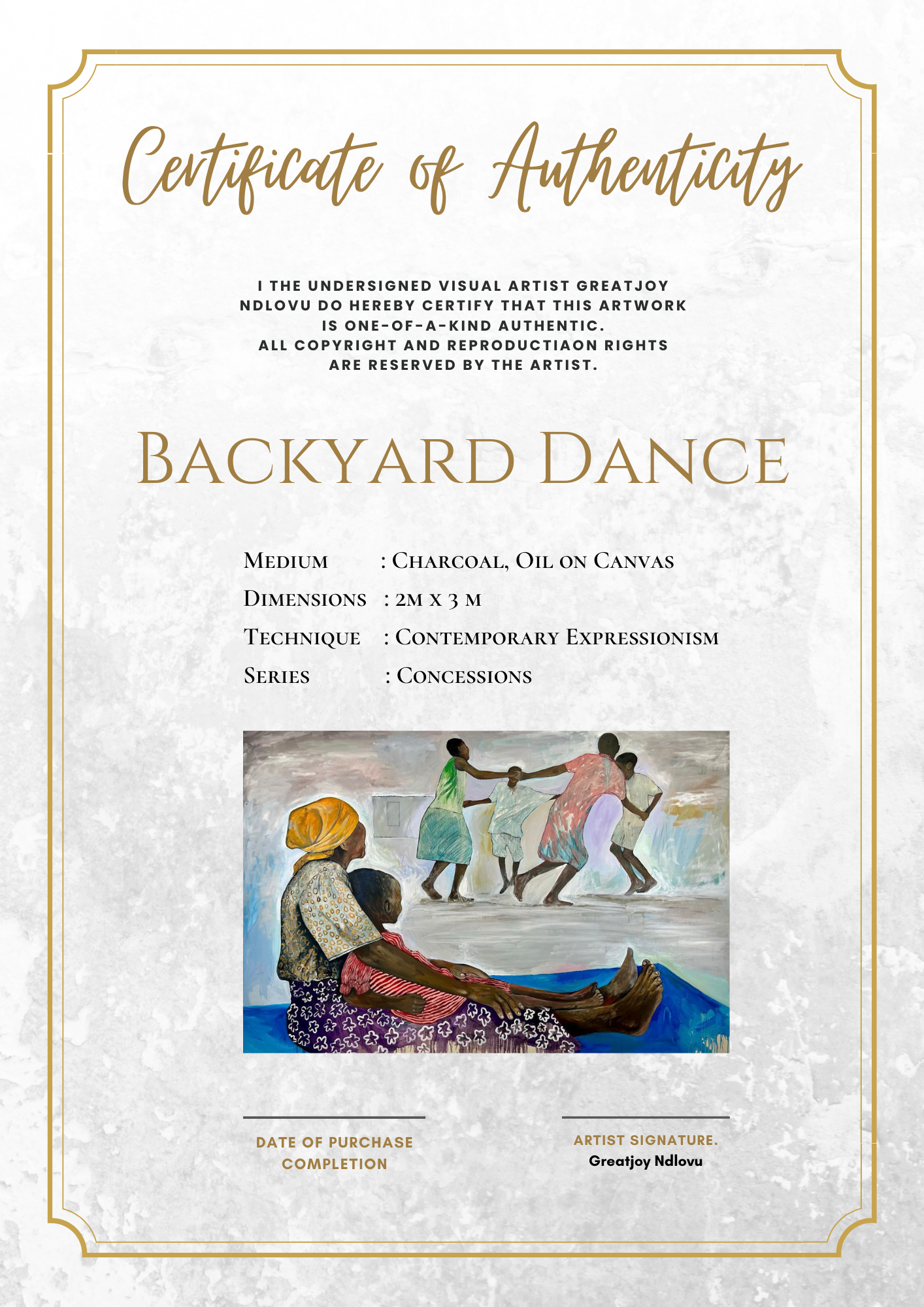 Studio paintings are all accompanied by an Authentification Certificate which verifies that the artwork is a genuine product of Greatjoy Ndlovu. For older Greatjoy Art Studios artworks, an Authentification Certificate may be granted upon request - after careful consideration of the originality of the artwork attributed to the studio artist, Greatjoy Ndlovu.